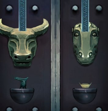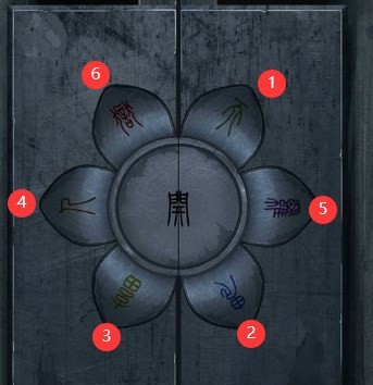 引魂铃是一款中国古代益智探索手机游戏 ,第一个点一下,按照下图顺序点击门上的花瓣即可打开门