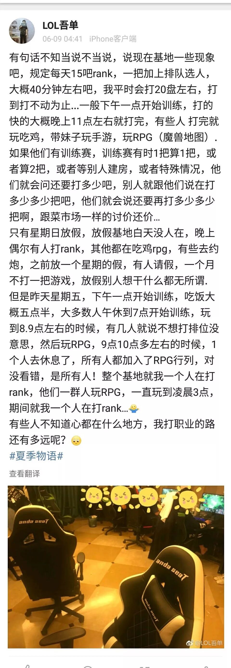 当时EDG有选手表示太累想睡觉,号称“国服第一悍将”,坦吾